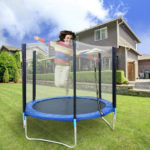 Трамполината е направена од квалитетен челик отпорен на корозија и други надворешни влијанија. Подлогата за скокање има слој водоотпорен материјал што нема да дозволи на децата да се лизнат додека скокаат или си играат во трамполината.