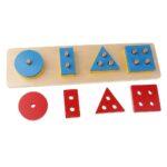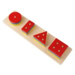 Шарена дрвена сложувалка со различни геометриски форми (круг, квадрат, триаголник и правоаголник) која помага во развојот на моториката, препознавање на бои и облици, како и логичкото размислување кај децата. Идеална играчка за учење низ игра!