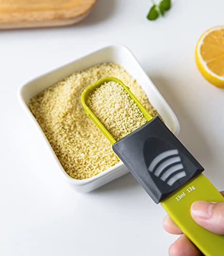 Лажицата е изработена од квалитентна нетоксична пластика, на самата лажица од двете страни има ознаки во грам или милилитри (1г/1мл до 13г/13мл).