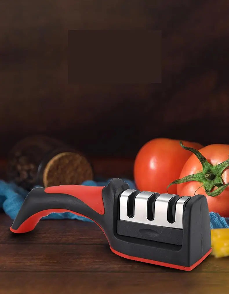 Изработена од високо квалитетна пластика и нерѓосувачки челик за острење, со гумирана подлога за да не се лизга.