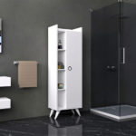 Мебелот има модерна и минималистичка естетика. Се одликува со чисти линии, елегантен дизајн и комбинација на сиви и црни бои. Компоненти: *Огледало поставено на ѕид со вградена LED светлосна лента. Од едната страна има отворени полици за чување на тоалети. Правоаголно лабаво направена од бела керамика. Основен шкаф поставен на ѕид со фиока и врата. […]