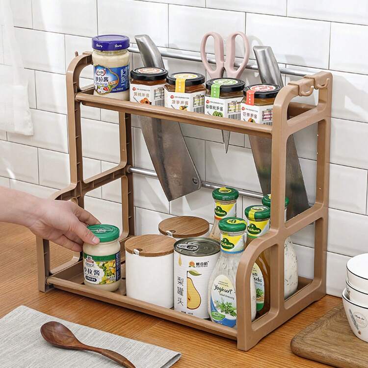 Внесете практичност и уредност во кујната со овој двослоен пластичен организер! Совршен за зачини, тегли, сосови, прибор и други кујнски додатоци.
