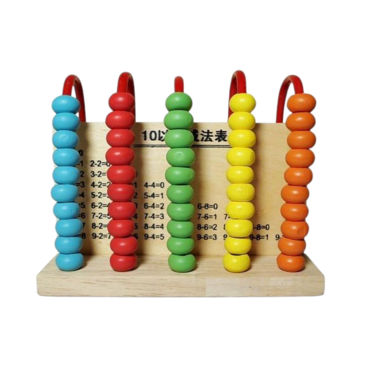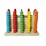 Шарена дрвена броеница со пет реда обоени зрна за учење броење, собирање и одземање. Идеална за развој на математички вештини, логика и моторика кај децата. Совршена едукативна алатка за учење преку игра!