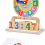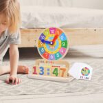 Шарен дрвен часовник со подвижни стрелки и плочки за поставување дигитално време. Вклучува картички со различни задачи за вежбање. Одличен начин за децата да научат да го читаат аналогното и дигиталното време преку игра и забава!
