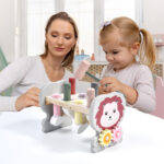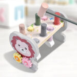 Шарена дрвена играчка во облик на лавче со дрвени клинци и чеканче. Идеална за развој на моторичките вештини, координацијата рака-око и концентрацијата кај децата. Забавна активност која поттикнува учење низ игра!