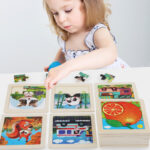 Шарени дрвени сложувалки со забавни мотиви како животни, возила и овошје. Секој сет содржи различни слики составени од неколку парчиња, идеални за развој на моториката, логичкото размислување и визуелната перцепција кај децата. Совршени за учење преку игра!